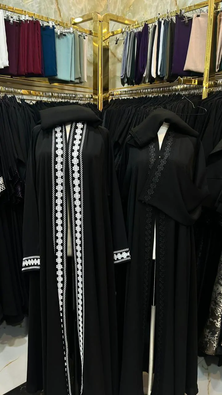 الصفحة الرئيسية اثاث عباية بتطريز أبيض فاخر